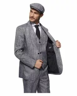 Als edler 20er Jahre Gangster im grau melierten Anzug wirst du zum Blickfang jeder Faschingsparty. Dein Charme & dein galanter Auftritt im Suitmeister Kostüm Anzug sorgt dafür, dass niemand deine Kriminalität ahnt. Die weiteren Partygäste der 20s Themenfete werden nicht merken, dass du gekommen bist, um Geld, Juwelen & Herzen zu stehlen. Gerade Herzen wirst du an Karneval sehr viele klauen können.