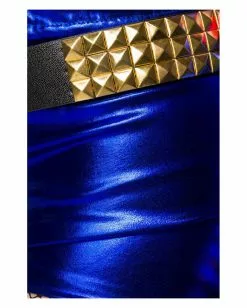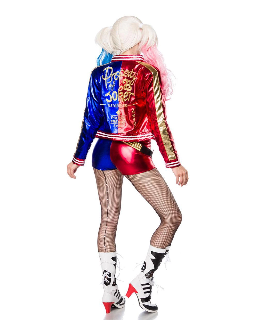 Du bekommst ein 5-tlg. Suicide Harlequin Kostüm für Erwachsene. Die Schurkin Verkleidung ist in Größe XS bis XL erhältlich und ein MUSS für DC – Fans. Das Harley Quinn Suicide Squad Kostüm besteht aus einem Blouson in Rot-Blauem Metallic-Look, Shorts, Strumpfhose, Longsleeve mit V-Ausschnitt und Gürtel. Die Shorts kommt mit Gummizug, was für höchsten Tragekomfort sorgt. Goldene Applikationen am Blouson sowie der goldene Gürtel bilden einen schönen Farbkontrast und verleihen dir dem DC Comics Damenkostüm den letzten Schliff. Unsere Original Harley Quinn Perücke komplettiert dein Outfit.