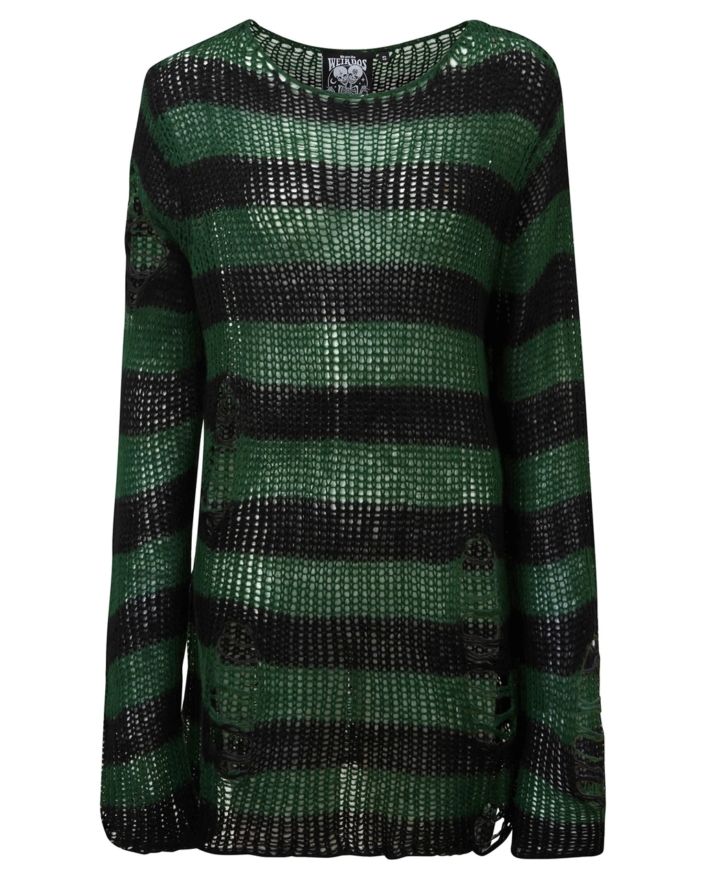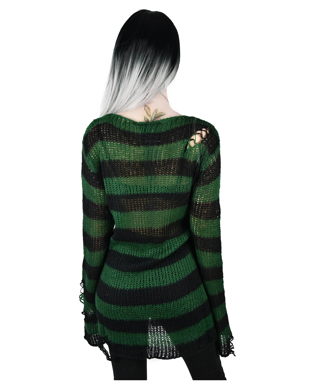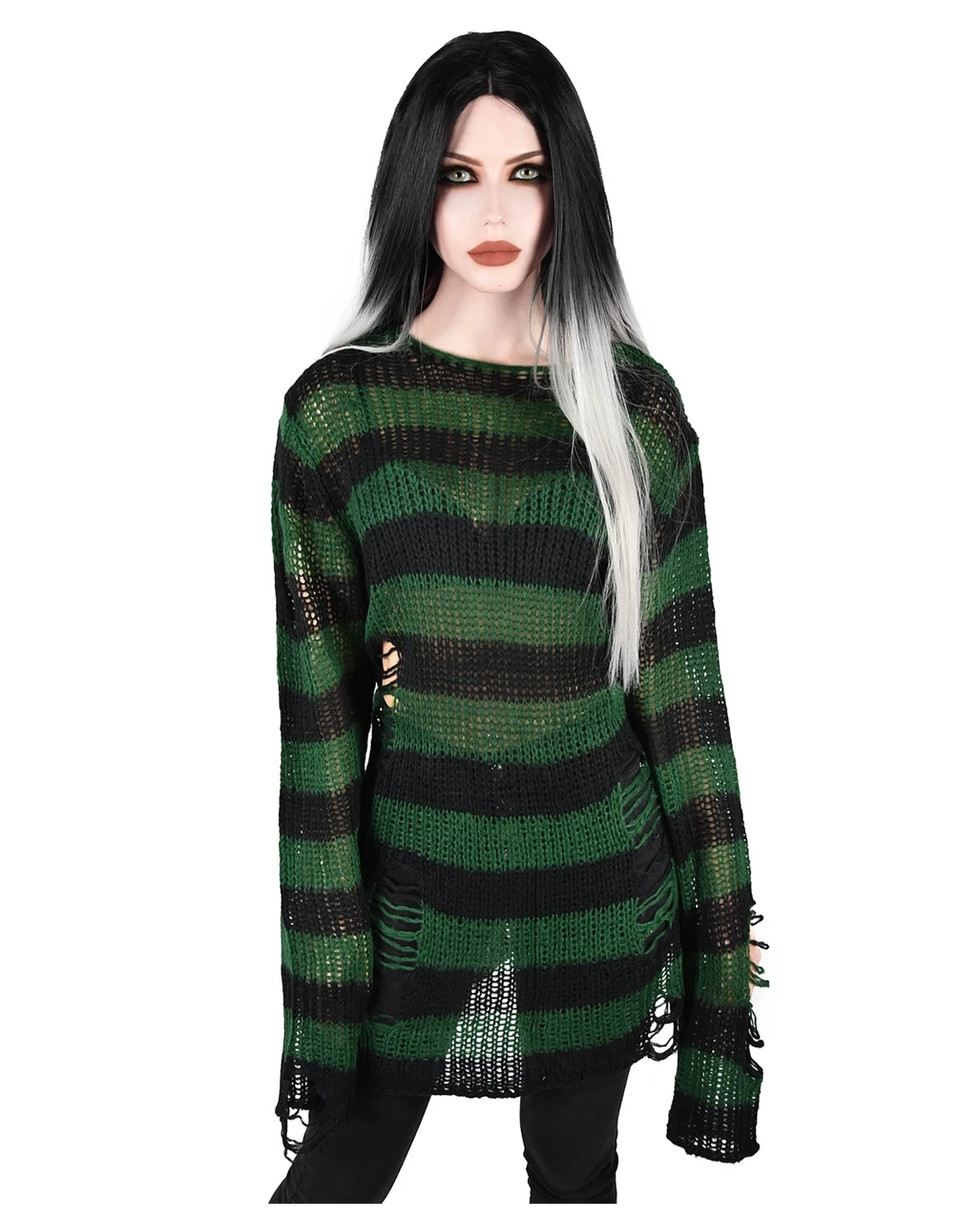 Der weiche Absinthe Strickpullover KILLSTAR erinnert an den Grunge der 90er Jahre und eignet sich perfekt zum Ăśberziehen – oder zum Tragen als EinzelstĂĽck. Der Gothic Pulli ist schwarz und gedämpft grĂĽn gestreift, mit extra langer Länge fĂĽr einen relaxten Look. Mit Distress-Details und tiefem Ausschnitt ist er ideal fĂĽr Festivals, Mitternachtsspaziergänge mit dem Mond und verkatertes SonntagsvergnĂĽgen. Kombiniere den KILLSTAR Absinthe Strickpullover mit schwarzen Leggings und einem eleganten Halsband fĂĽr einen besonderes lässigen Look.