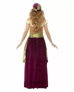 Das Afrikanische Voodoo Priesterin Kostüm besteht aus einem weinroten Kostümkleid mit beigefarbenen Oberteil samt Schnürung in Leder-Optik und weiteren Verzierungen wie Goldmünzen, Knochenteilen und einer Rüsche in Kunstleder-Optik. Dazu gesellen sich eine Kette mit gemusterten Holzperlen, eine zweite mit Knochenteilen sowie eine Kopftuch mit Kunstfedern und eine grüne Schärpe. Dazu passt die Voodoo Priesterin Perücke und für den Herren das Afrikanischer Voodoo Mann Kostüm Deluxe.