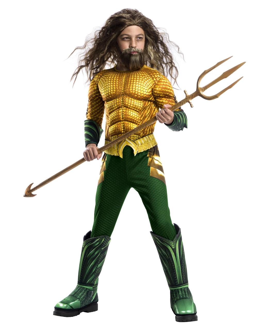 Er kann 100 Tonnen Stahl stemmen, Bakterien & Plankton kontrollieren, und er ist der geborene Anführer. Der DC Comics Superheld Aquaman ist der wahre Herrscher der Unterwasserwelt. Im 2018 erschienenen Kinofilm wird er von Jason Momoa verkörpert – Mit dem Äußeren eines Hünen und seinen übermenschlichen Fähigkeiten ist der DC Held unverkennbar. Verwandle deinen Nachwuchs zum Kinderfasching in den bärtigen Helden und bestelle das original Aquaman Muskelkostüm für Kinder Deluxe. Das gepolsterte Superhelden Kostüm macht deinen kleinen Abenteurer zum echten Hingucker!