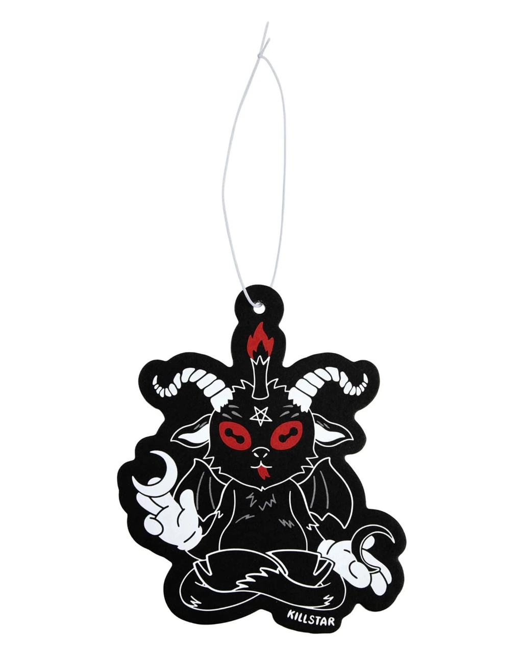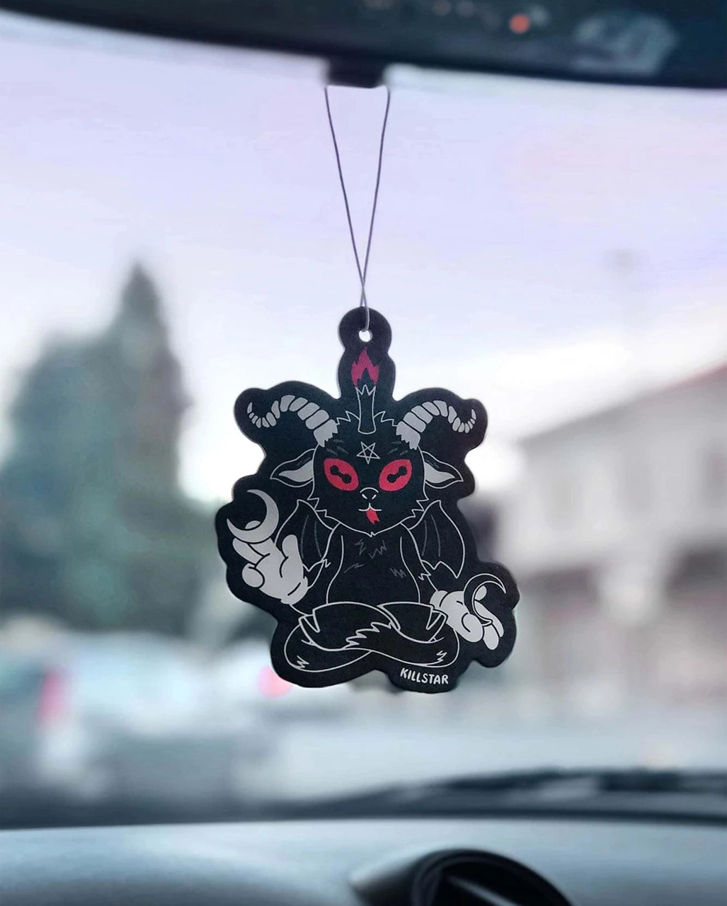 Der Baphy Lufterfrischer KILLSTAR ist ein witziger Hingucker an deinem Autospiegel. Er ist im Look eines putzigen Baphomets mit Kerze auf dem Kopf designt. Damit kannst du dein Auto „erfrischen“, damit es nicht nur nach kalten Fritten Pizza und getragenen Socken riecht. Der okkulte Look ist dabei natürlich ideal für Gothic und Halloween Fans.