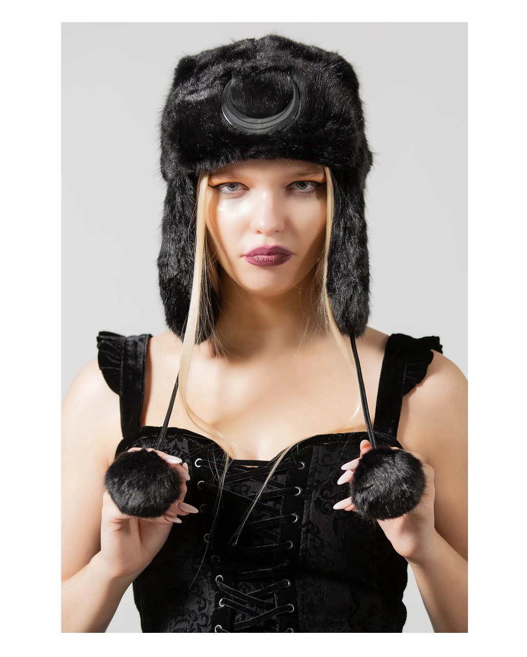 Schwarze Kunstpelz Kappe als stylisches Gothic Zubehör für kalte Tage