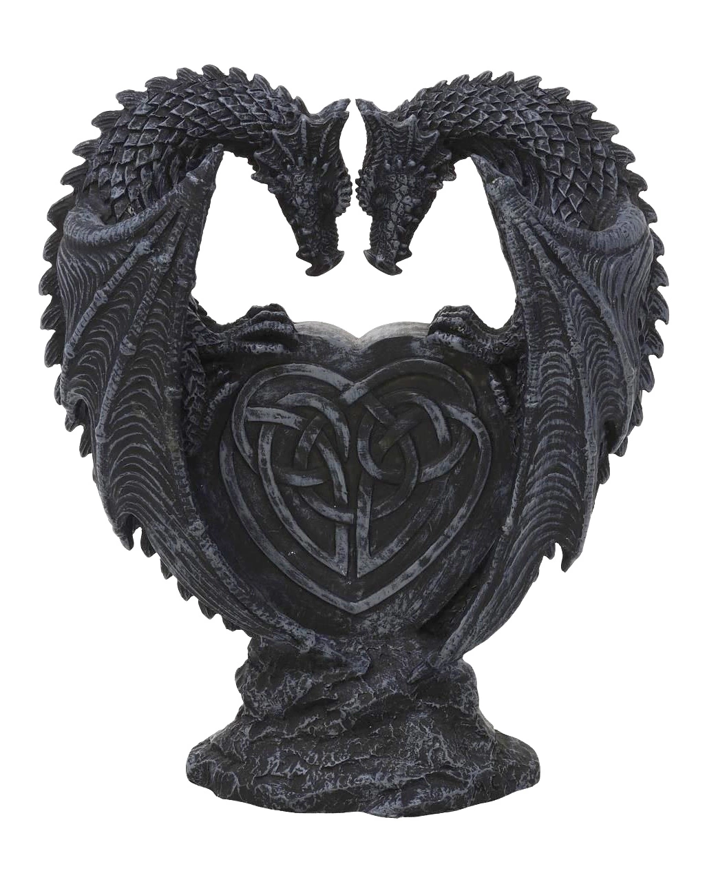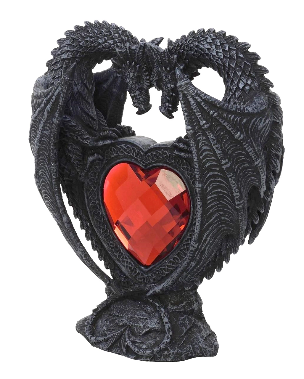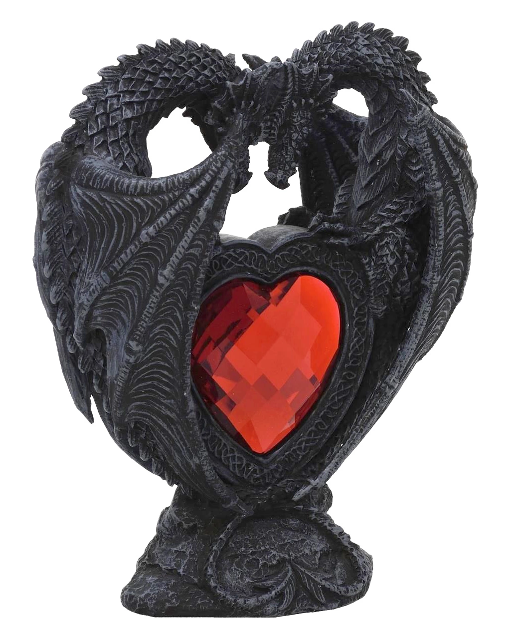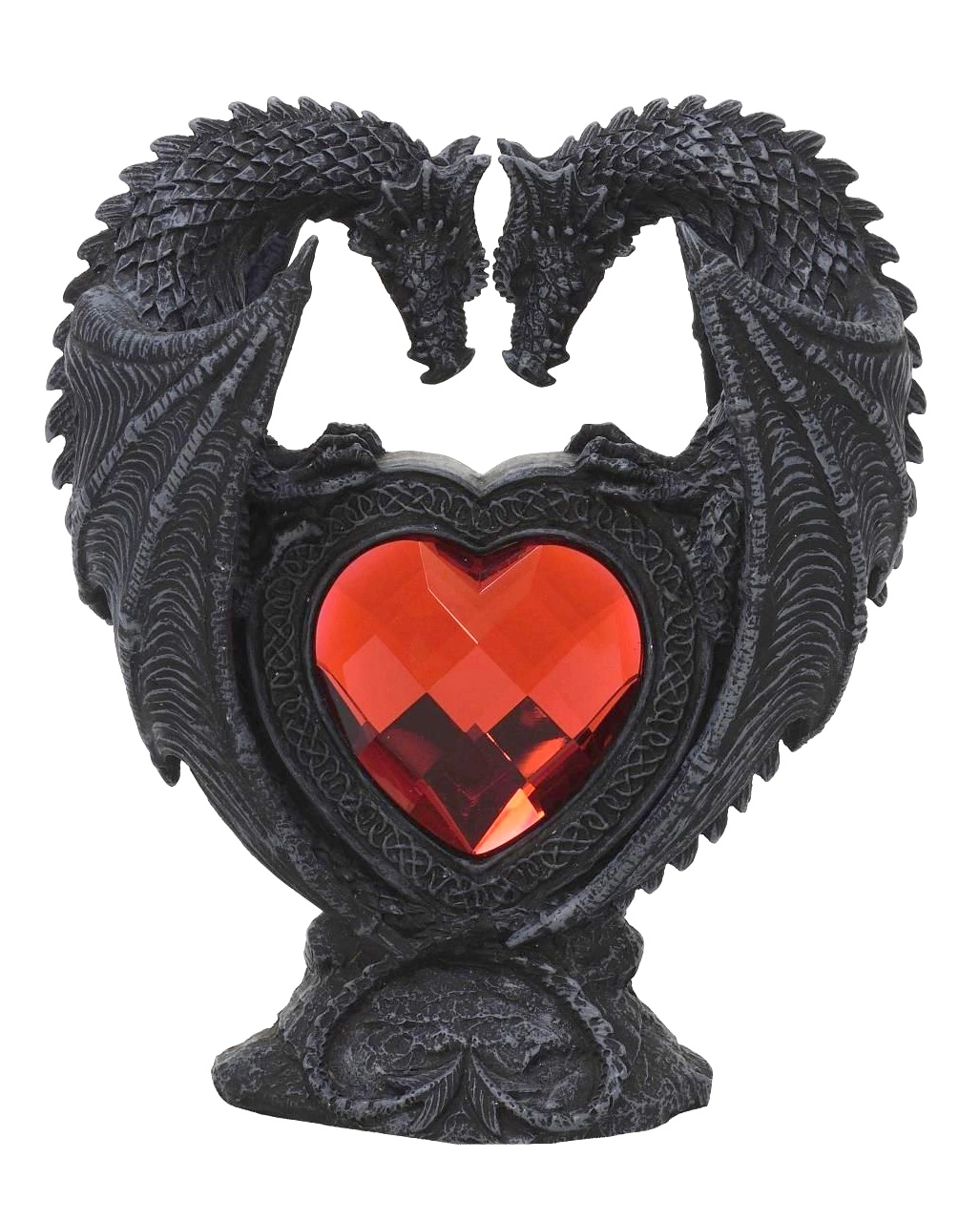 Beeindruckende Gothic Deko mit schwarzen Drachen und rotem Herzstein