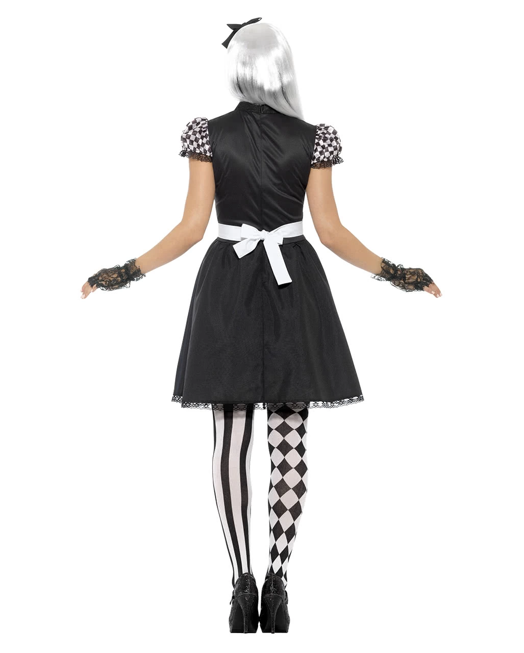 Die Dunkle Alice Frauen Verkleidung kommt als sexy Kleid mit verschwommenen Karos, Puffärmeln und Spitze am Dekolleté daher. Im Lieferumfang sind ebenfalls die weiße Schürze mit Spitze und Uhr-Motiv sowie ein Haarreif mit schwarzer Schleife enthalten. Ergänze dein Kostüm mit der Deluxe Gothic Alice Perücke und den Überknie-Strümpfe Alice.