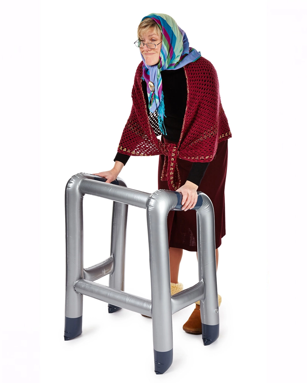 Die Gehhilfe zum Aufblasen hat eine Höhe von ca. 90 cm und ist aus Kunststoff. Das 4-Beinige Gestell lässt sich mühelos aufpumpen. Für lustige Senioren ist dieses Accessoire ein echtes Muss, um für jede Menge Spaß zu sorgen. Dein realistisches Greisen Make-up erhälst du mit dem Senioren Make Up Stack. Oder du holst dir gleich die verrückte Großvater Maske mit grauen Haaren.