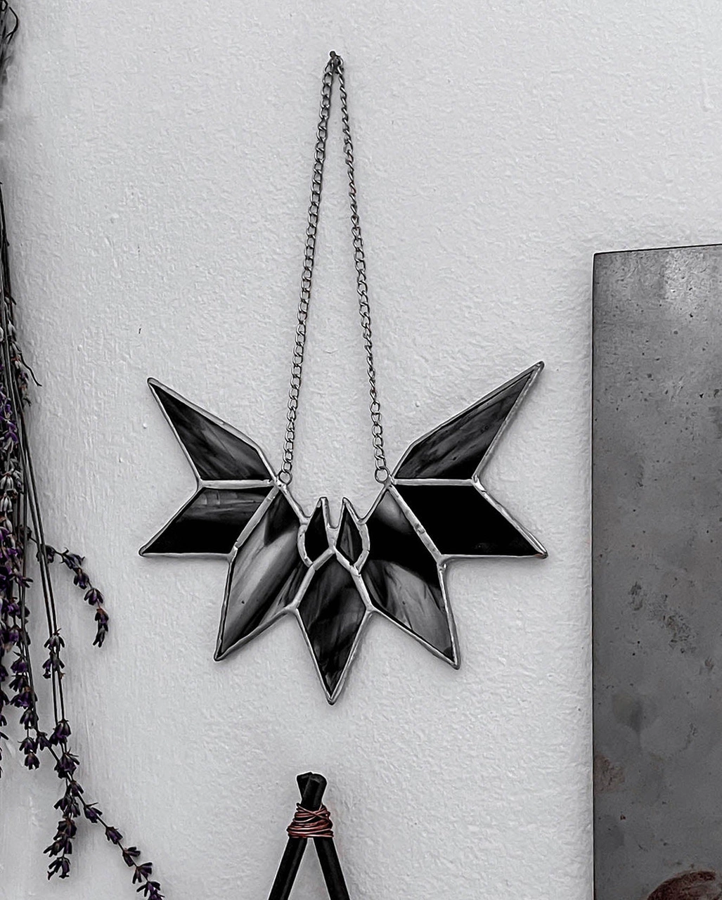 Schwarzes Glas Element in Fledermaus Form als eindrucksvolle Gothic Deko