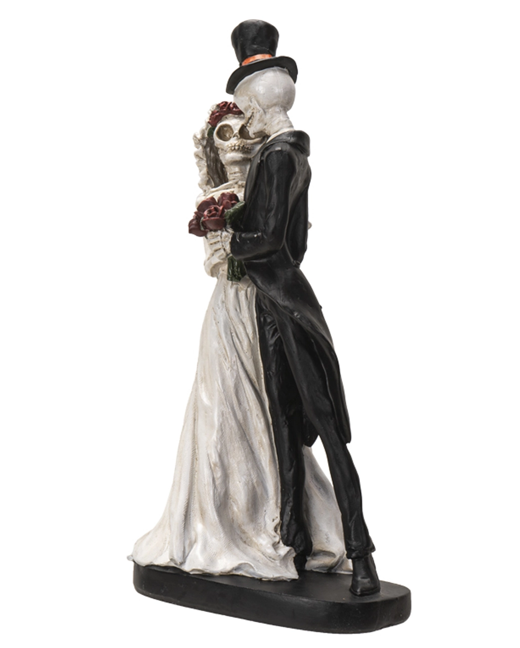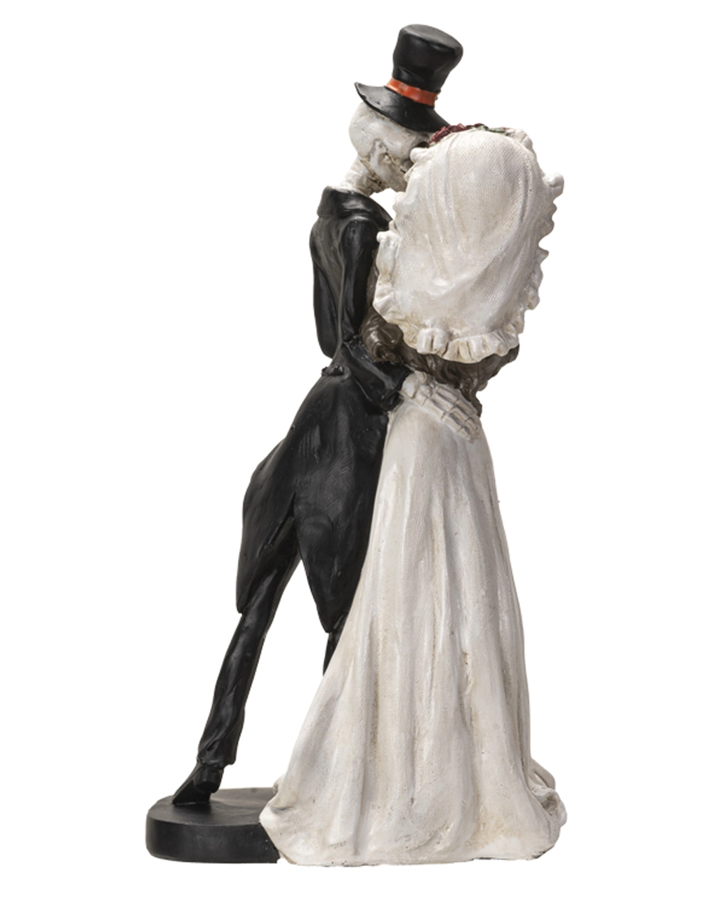 Gothic Skelett Brautpaar, das sich nach dem Tod auch noch liebt & im Mondlicht auf den Gräbern weitertanzt. Mit dem skelettiert, verliebten Hochzeitspaar besitzt du eine romantische Gothic Deko, die auf ewig dauernde Liebe hoffen lässt.