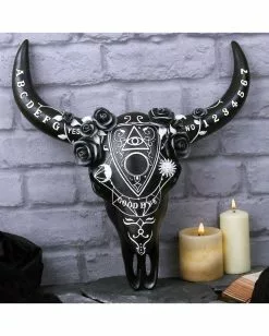 Okkulter Stierschädel mit mystischen Symbolen als Wanddeko