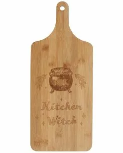 Schneide, Zerteile und schnibbel auf diesem wunderschönen Holz Schneidebrett für Halloween. Das Wicca Küchenzubehör zeigt den Schriftzug „Kitchen Witch“ sowie einen kleinen Hexenkessel. Das Holzbrett ist der perfekte Helfer für Hexen, die ihre Liebsten gerne mit köstlichen Gerichten verwöhnen. Auch als Küchendeko macht sich unser hölzernes Schneidebrett hervorragend.