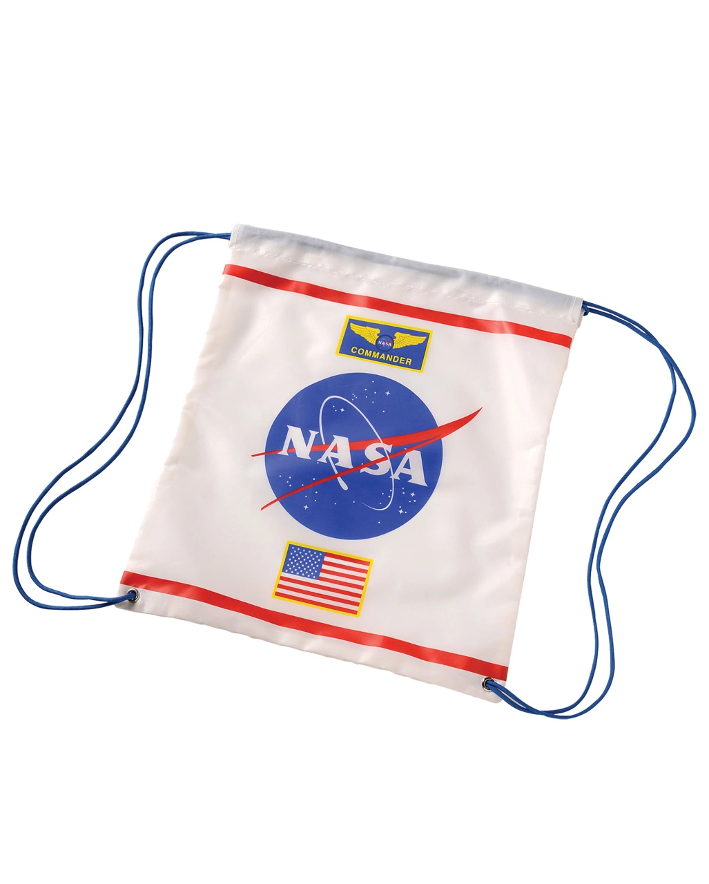 Der Nasa Astronaut Rucksack mit Kordelzug für Kinder ist gut zu tragen, dank des leichten Materials. Durch den Kordelzug kannst du den Kostümrucksack für Astronauten ganz easy auf und wieder zuziehen, damit die gesammelten Süßigkeiten nicht wieder herausfallen. Der Rucksack ist ganz im Style eines Raumfahrers gestaltet. Der weiße Untergrund ist mit dem Logo der Nasa versehen, und zwar so groß, dass niemand übersehen kann, was deine Passion ist. Dazu sieht man die amerikanische Flagge und zu guter Letzt sieht man deinen Rang. Natürlich bist du ein Commander, wie auf der obersten Applikation zu lesen ist. Weitere Kostüm Accessoires für Raumfahrer oder Kostüme wie das NASA Astronauten Kinderkostüm weiß findet ihr hier im Shop.