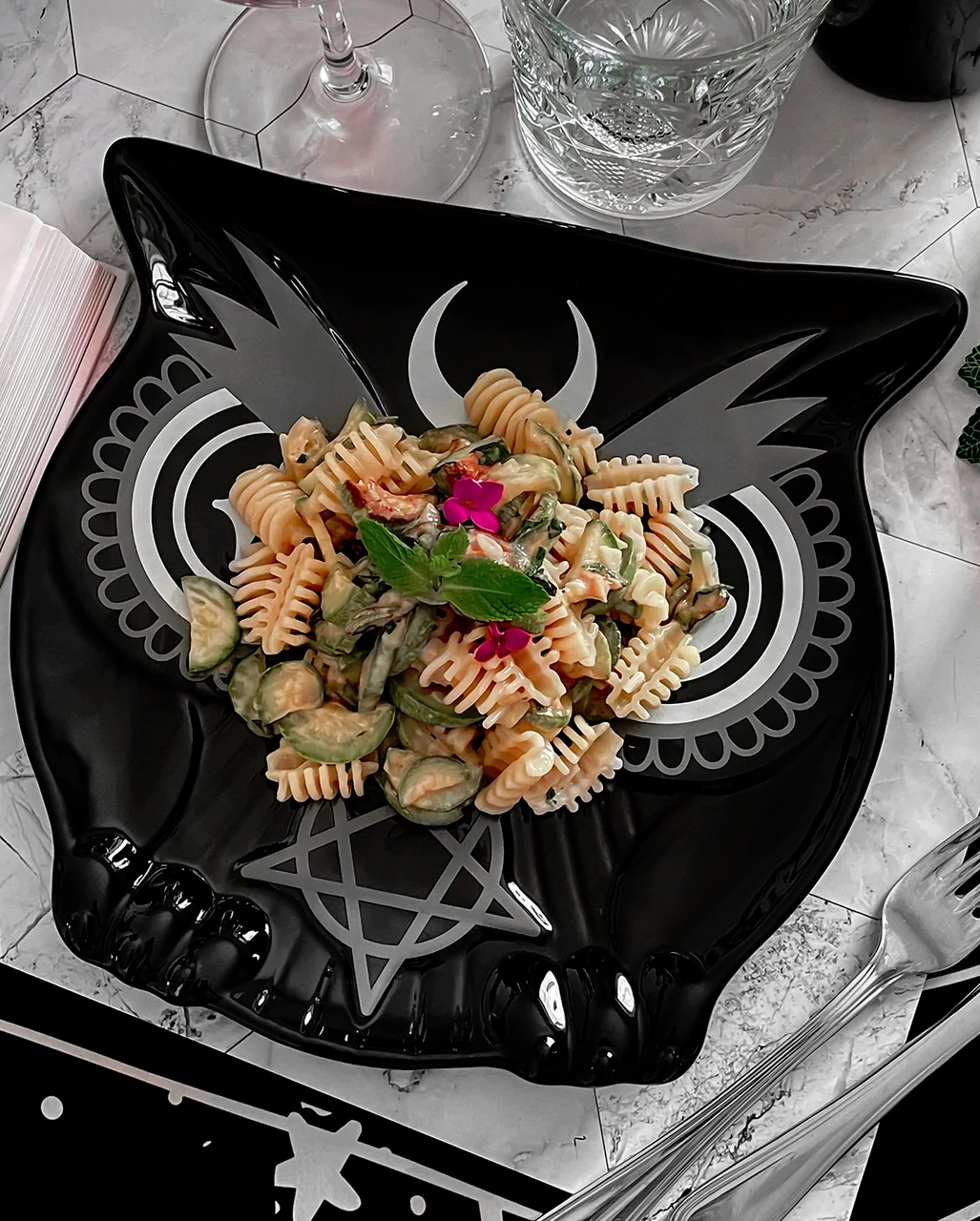 Der Owl Servierteller KILLSTAR ist groß genug, damit du mehr als nur eine Käsestulle darauf servieren kannst. Außerdem reicht die Größe von ca. 23 x 24,5 cm aus, um dem eindrucksvollen Eulen Design genügend Raum zu geben. Die Eule mit dem okkulten Flair besitzt schließlich ein spektakuläres Design, das voller Symbolik ist und mit einigen wunderbar mystischen Details begeistert.