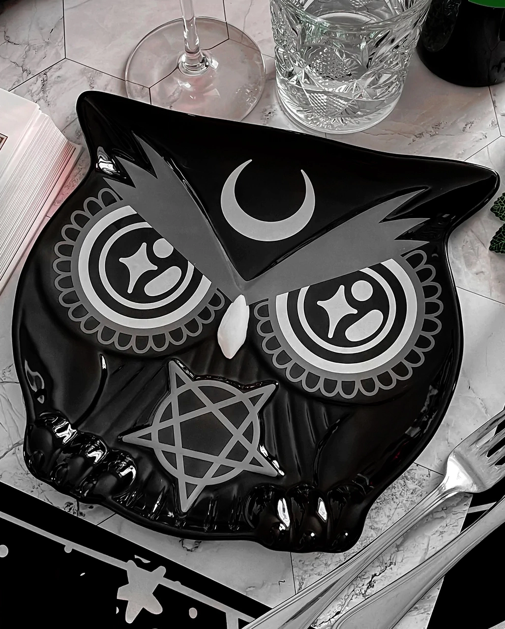 Ausgefallenes Gothic Geschirr im Eulen Design mit mystischen Symbolen