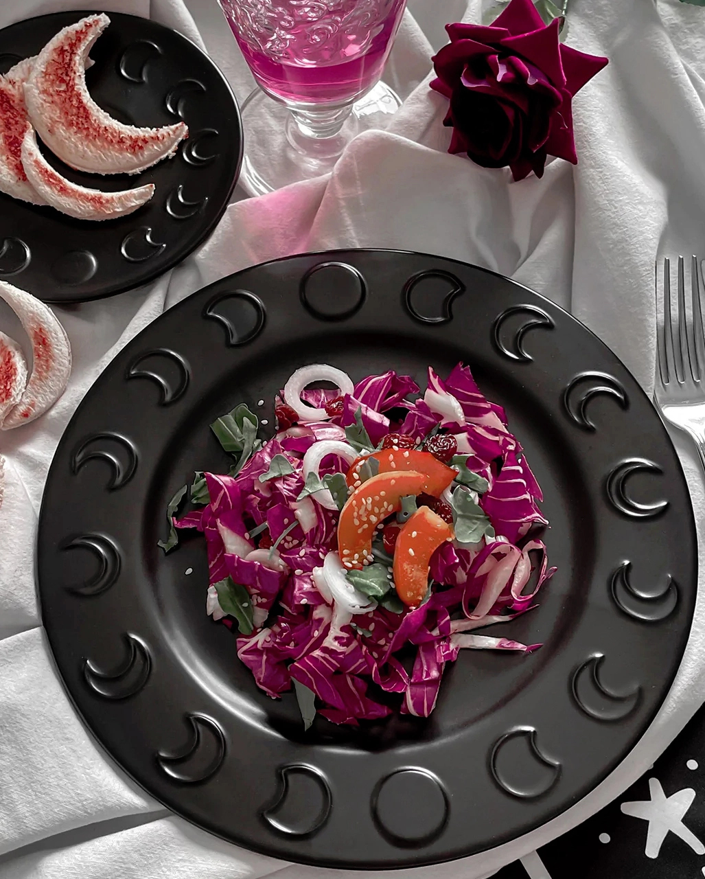 Der Phases Servierteller KILLSTAR wird deine Hexen-Freundinnen beim nächsten Dinner begeistern. Das tiefschwarze Gothic Geschirr in matter Keramik beeindruckt im Halbmond Design. Der edle Gothic Teller ist eine geniale Deko für den perfekt gedeckten Esstisch.