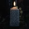 Auch der Sensenmann liebt Katzen. Da verwundert es nicht, dass er sich dieses niedliche Samtpfötchen als Haustier hält. Die Reaper Katze mit Totenschädel Ketten ist nun auch dein treuer Begleiter – und zwar nicht nur in der Halloween Zeit. Die Deko Katzenfigur trägt eine schwarze Robe und ein Halsband mit kleinen Totenschädeln. Auch an den Vorderpfoten sind kleine Totenkopf Ketten angebracht. An Halloween sorgt unser Kätzchen fĂĽr Staunen, denn schlieĂźlich lernt es, wie man die Lebenden ins Reich der Toten befördert. Der ein oder andere nimmt sein Ableben aber bestimmt gerne in Kauf, solange er die sĂĽĂźe Reaper Katze streicheln darf. Diese Halloween Deko Katze aus Kunststein lässt sich dekorativ auf Tisch, Fensterbank oder Regal platzieren.