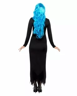 Das Röntgen Frauen Kostüm ist ein schwarzes, langes und eng anliegendes Kleid mit dem Aufdruck einer Röntgenaufnahme des ganzen Körpers außer Kopf, Händen und Füßen. Das Kleid ist knöchellang und hat unten einen zackigen Saum. Der Aufdruck ist in einem hellen, transparenten Blau-Grau, wie es für Röntgenaufnahmen typisch ist. Man sieht neben den Knochen auch innere Organe und die wichtigsten Adern. Mit je einem Paar Schwarze Skelett Pumps mit Knochenmotiv und Skelett Handschuhe weiß sowie der Skull and Bones Maske kannst du den Durchblick noch verbessern.