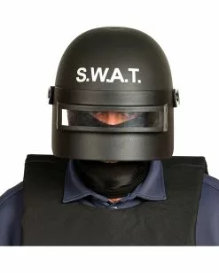 Ein SWAT/Polizeihelm in Schwarz mit der Aufschrift S.W.A.T., geeignet für Erwachsene. Der Helm aus Kunststoff hat ein Visier für die Augen. Täuschend echter Helm für dein Polizeikostüm eines Sondereinsatzkommandos, um damit gegen Michael Myers und Scharen von Zombies gewappnet zu sein.