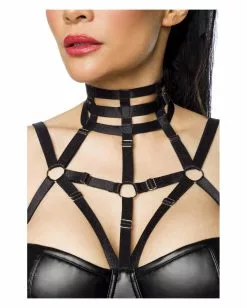 Das Harness Wetlook Minikleid in Schwarz ist in Größe XS-S und M-L verfügbar. Es besteht aus elastischem Material mit einer sexy Wetlook-Optik. Die Fesselriemen im Dekolleté- und Halsbereich sind kunstvoll ausgearbeitet – ein sexy Eyecatcher für besondere Gelegenheiten. Noch mehr Gothic Mode & Fetisch Accessoires findest du auf Karneval Universe. Lass dir auch die Neunschwänzige Minipeitsche nicht entgehen!