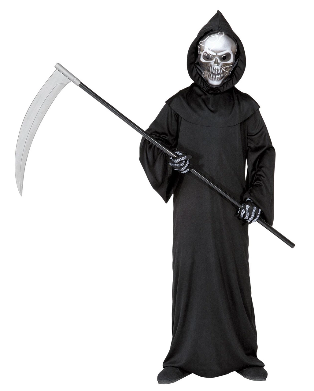 Lieferumfang: 1 x Sensenmann Kinderkostüm mit Totenschädel Maske