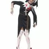 Sexy Hexenkostüm bestehend aus kurzem Samt-Minikleid mit Chiffonfransen und goldener Lurexborte am geschnürten Ausschnitt. Mit passendem Hexenhut. Stiefel nicht inkl.