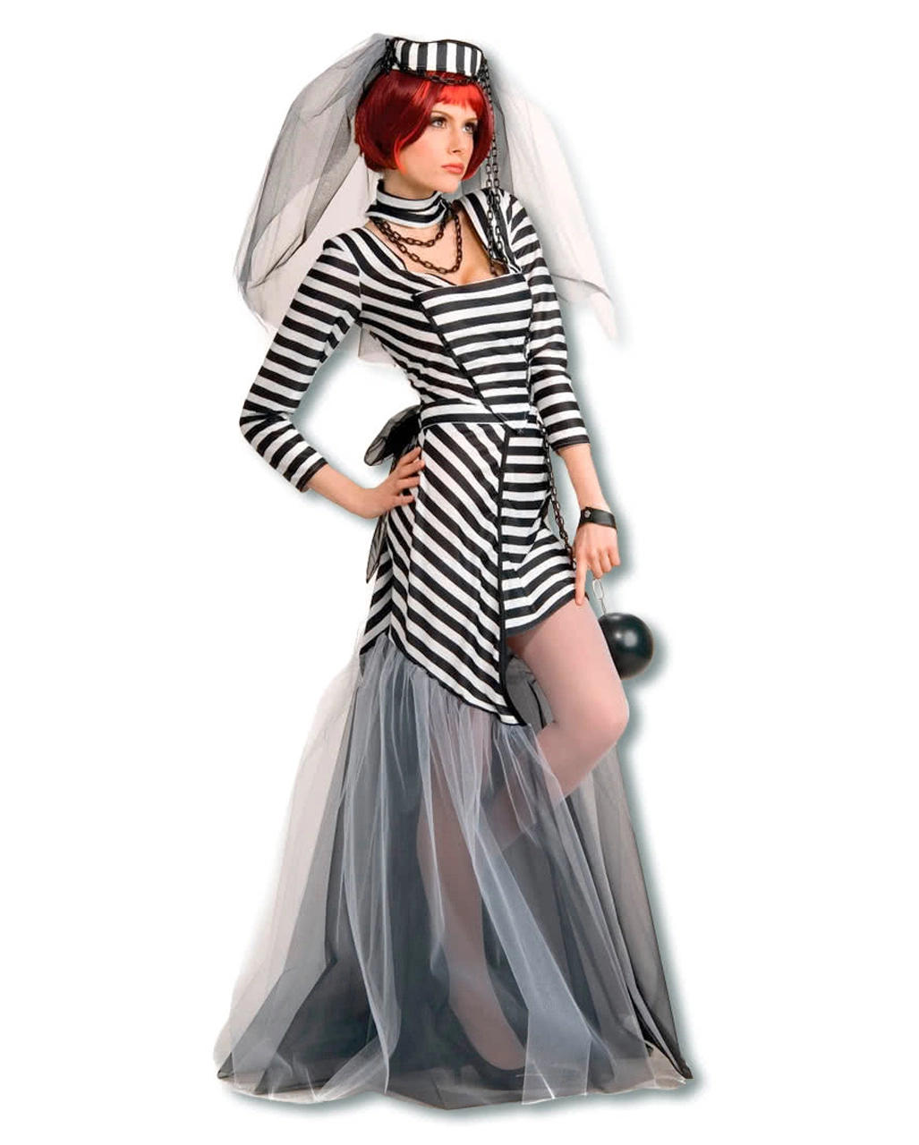 Mit dem sexy Sträflings Braut Kostüm kannst du als gefangene Braut den schönsten Tag im Leben im Knast verbringen. Dass die Hochzeit an Karneval hinter Gittern stattfindet, scheint niemanden zu stören. Und so wundert sich auch keiner, dass die Sträflings Braut ihr Kleid aus alten Uniformen geschneidert zu haben scheint.