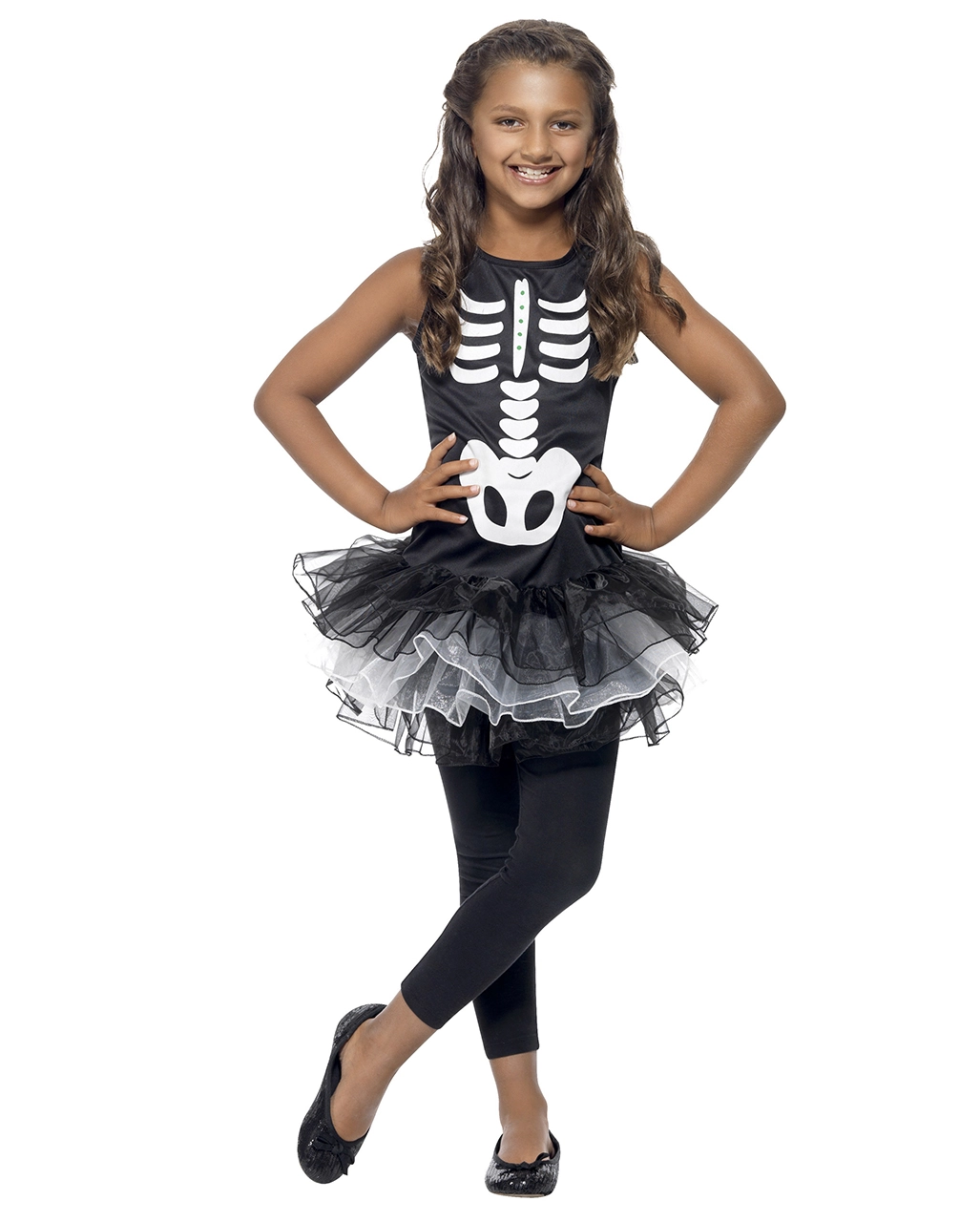 Verkleide deine Tochter als niedliche Skelett Ballerina, die über das Tanzparkett schwebt und alle Blicke auf der nächsten Faschingspaty im Kindergarten auf sich zieht. Mit dem schwarzen Kleid mit Tüll Tutu ist dein Kind schnell verkleidet und kann auf die nächste Karnevals Party tanzen.