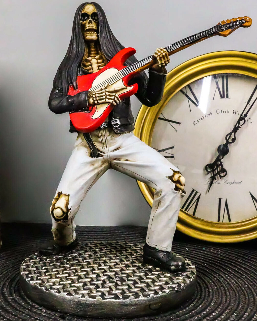 Gitarre spielendes Gerippe aus Kunststein als genialer Geschenkartikel für Rock Fans