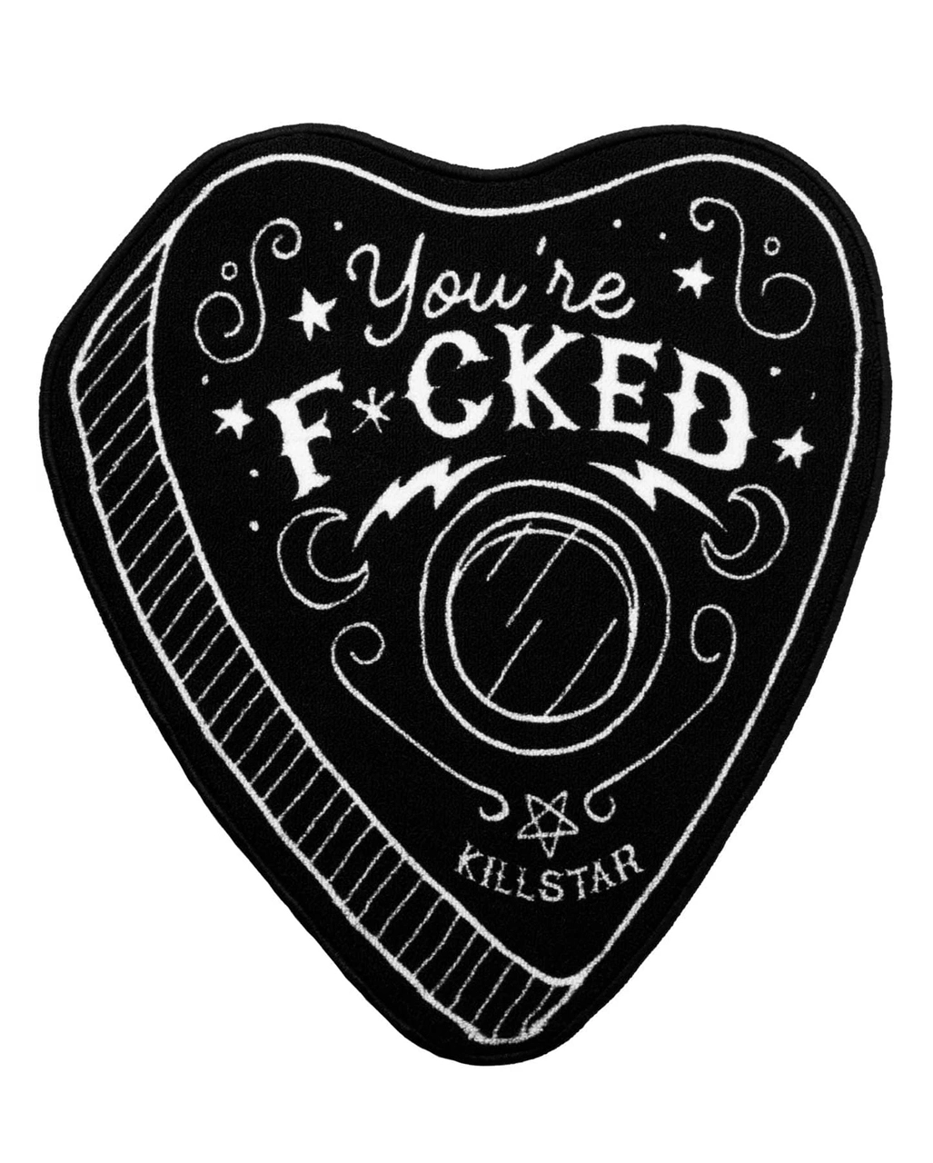 …. der tritt nach dem Duschen auf den Spirited Planchette Badvorleger KILLSTAR, der an ein spezielles Zubehör des Ouija Boards erinnert. Die Form unserer Gothic Badezimmer Deko ist schließlich die einer Planchette. Sie ist schwarz und mit weißen geschwungenen Zierstrichen, einem kleinen Pentagramm und der Aufschrift „You´re f*cked“ designt. Was das heißt, brauchen wir an dieser Stelle wohl nicht übersetzen. Passend zu diesem genialen Gothic Duschvorleger findest du bei uns im Shop auch den Conjuring Duschvorhang KILLSTAR.
