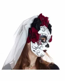 - Von Hand bemalte DOD Frauenmaske mit Blüten & Schleier