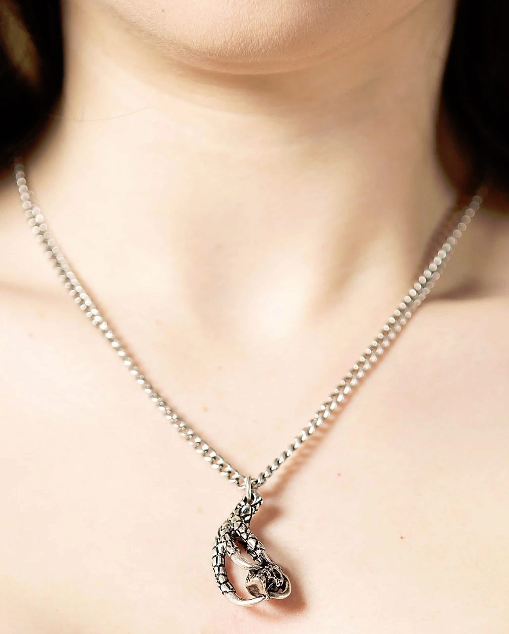 Verleihe deinem Look mit unserer Superstitious Halskette KILLSTAR eine ganz besonders mystische Aura. Dein dunkles Herz wird diesen außergewöhnlichen Gothic Schmuck lieben. Die Kette mit Totenkopf- und Klauen-Anhänger passt doch perfekt zu deinem alternativen Mode Styling. Schmücke dein dunkles Outfit mit etwas Mystischem und festige deinen Status als spirituelles Wesen.