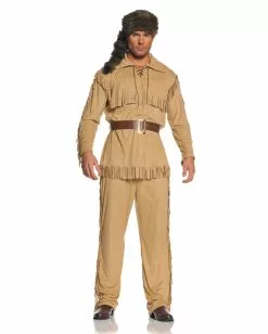 Die Trapper Verkleidung besteht aus einem Hemd und einer Hose aus Kunstleder sowie aus einem Gürtel und einer Trapper Mütze. Das Hemd wird vorne mit einer Schnürung verschlossen, an den Armen, am Saum, an den Schultern und an der Brust hat das Hemd Lederfransen. Auch die Hose ist an der Außennaht mit Fransen verziert. Der Gürtel hält mehr das Hemd zusammen als die Hose oben, das erledigt ein Gummizug im Hosenbund. Die typische Bieber-Mütze vervollständigt das Kostüm. Der Trapper braucht noch einen Krieger Tomahawk, die Indianer Halskette und dazu ein Trapper Bart braun.
