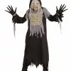 Das aufregende Halloween Vampirkostüm besteht aus einem Kleid mit Oberteil aus Crashlook Stoff, sowie einem langen, geschlitzten Samtrock. Am Oberteil ist ein gemusterter Stoff eingearbeitet, die Ärmel sind ab dem Ellbogen trompetenartig. Genial an diesem Vampirkostüm ist auch der Einsatz aus Chiffon zwischen Stehkragen und dem weiten Ausschnitt. Das Vampirkostüm ist ideal für alle Halloween Partys, Horror Kostümbälle und zum Tanz der Vampire. Kreaturen der Nacht tragen unsere authentischen Vampir Eckzähne medium und farbige Blood Splatter Motivlinsen .