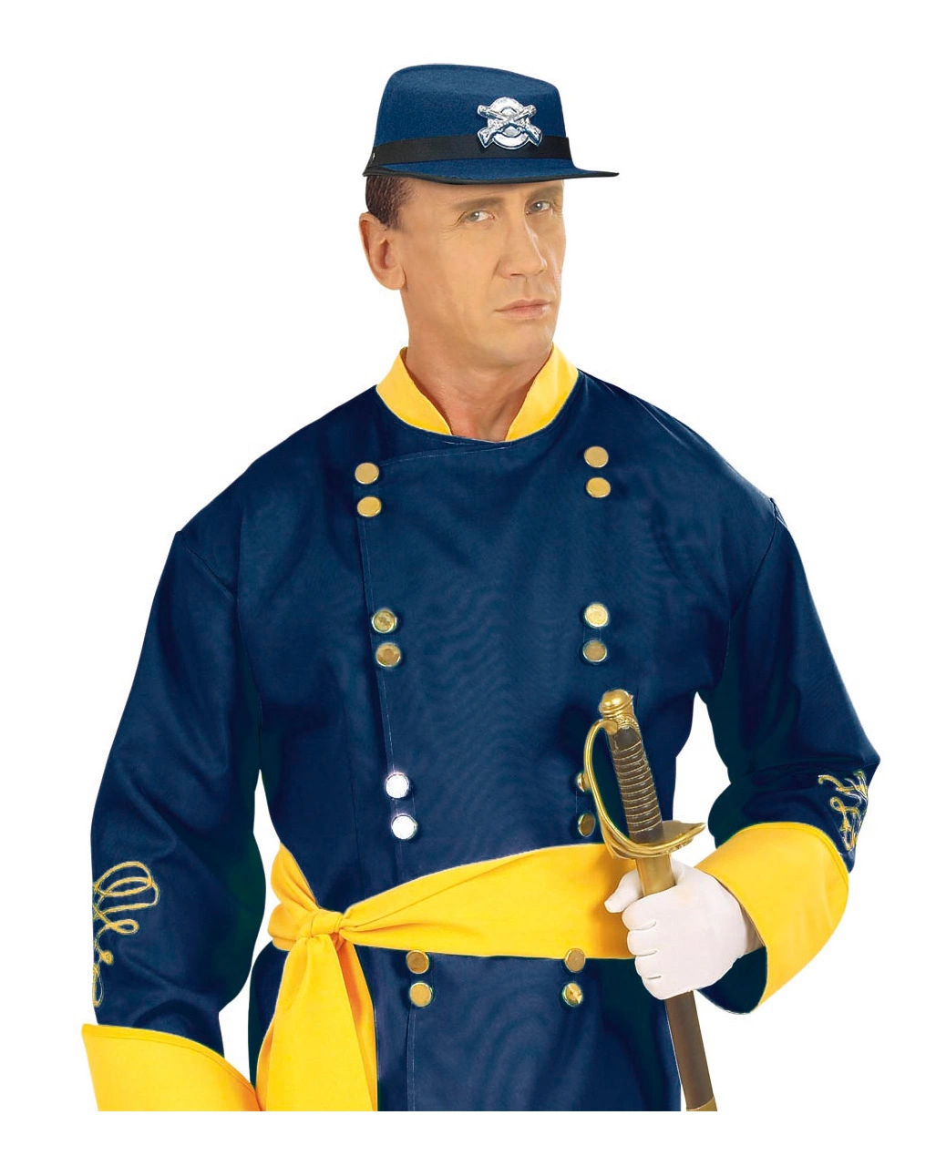 Die blaue Yankee Mütze wurde aus Filzstoff im traditionellen Design der Nordstaaten Uniformen gefertigt. Vorne hat die Schirmmütze ein silbernes Abzeichen mit gekreuzten Flinten und schwarze Streifen. Als historisches Accessoire zu Deiner Nordstaaten Uniform haben wir neben unsere Soldaten Mütze auch ein Leutnant Schwert, das auf Bürgerkrieg-Liverollenspielen wunderbar zur Geltung kommt. Natürlich kannst du dich mit der Graue Südstssten Mütze auch für die andere Seite entscheiden.