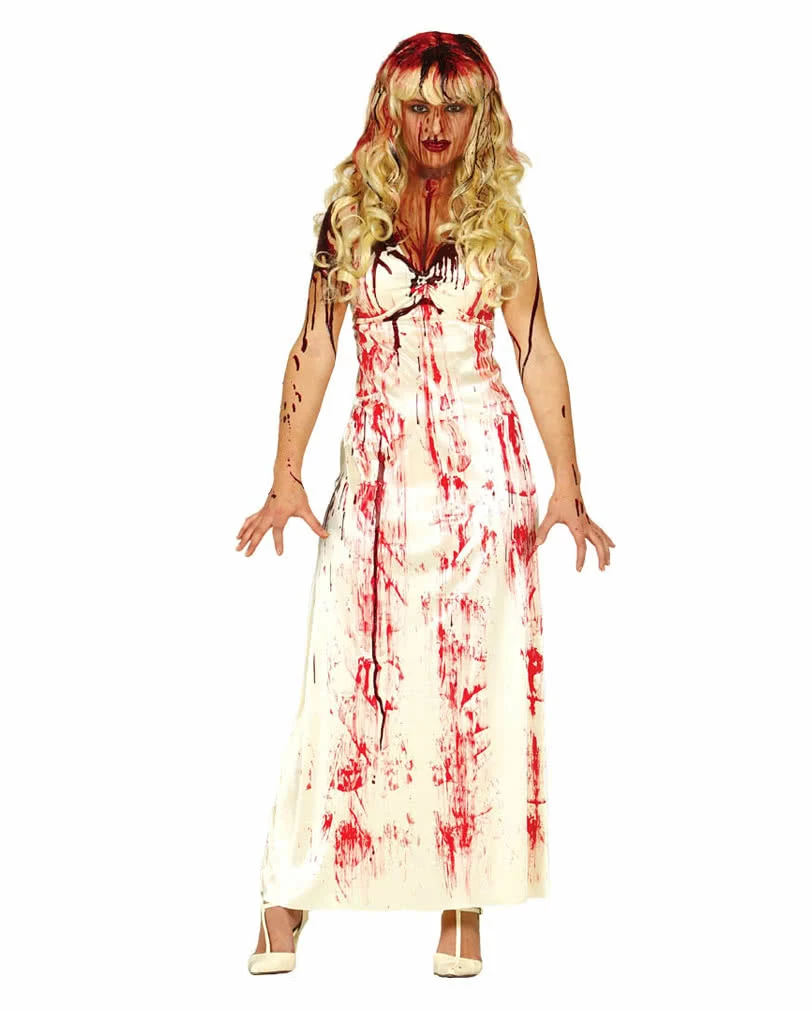 Mit dem Zombie Abschlussballkönigin Kostüm verwandelst du dich nur mit einem Kleid in eine amoklaufende untote Abschlussballkönigin. Über und über mit Blut besudelt kannst du deine Halloween Partygäste erschrecken und zeigen, wie schrecklich du und deine Rache an der Welt für alle Vergehen an dir sein werden. Auferstanden von den Toten kehrst du auf die Erde zurück um alle um den Verstand zu bringen.
